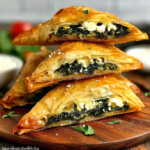 Spanakopita triangles embody the heart of Greek cuisine, bringing together rich flavors and a satisfying crunch. The combination of flaky phyllo dough with a savory filling of spinach, herbs, and feta cheese makes these little pockets of joy a versatile dish.
