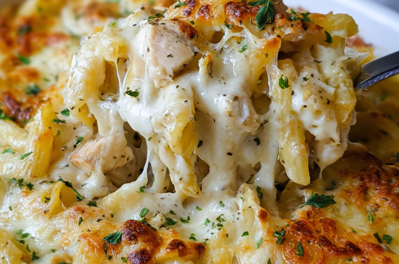 This creamy Chicken Alfredo Casserole blends tender chicken, al dente pasta, and rich cheese for a comforting dish that's ideal for family gatherings or cozy n…