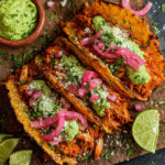 Crispy Chicken Tinga Tacos with Avocado-Jalapeño Crema