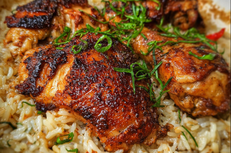 - Fluff the rice with a fork, serve the chicken on top, and enjoy!